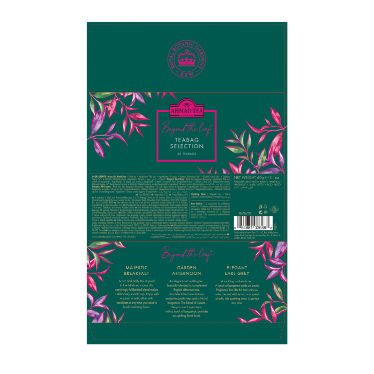 | Ingredient Declaration | Majestic Breakfast: Black TeaElegant Earl Grey: Black Tea, Bergamot FlavouringGarden Afternoon: Black Tea, light Bergamot Flavouring |