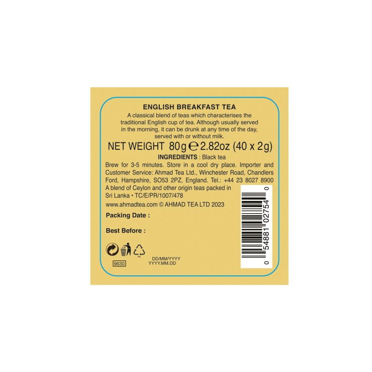 | Ingredient Declaration | Black TeaBergamot Flavouring |