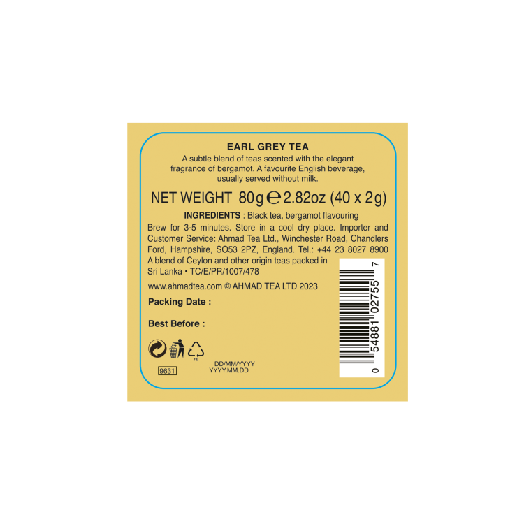 | Ingredient Declaration | Black TeaBergamot Flavouring |