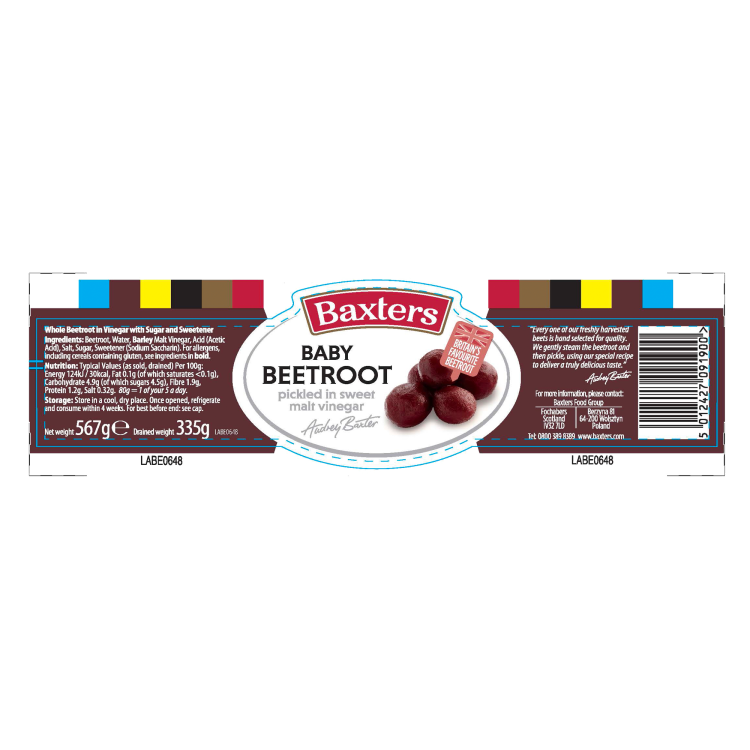 | Ingredient Declaration | Beetroot, Water, Barley Malt Vinegar, Acid (Acetic Acid), Salt, Sugar, Sweetener (Sodium Saccharin). |