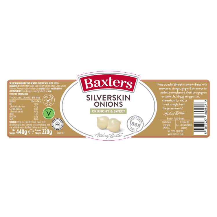| Ingredient Declaration | Onions, Water, Spirit Vinegar, Sugar, Sea Salt, Ground Ginger, Ground Cinnamon, Preservatives(Sodium hydrogen sulphite, Sodium metabisulphite). |
