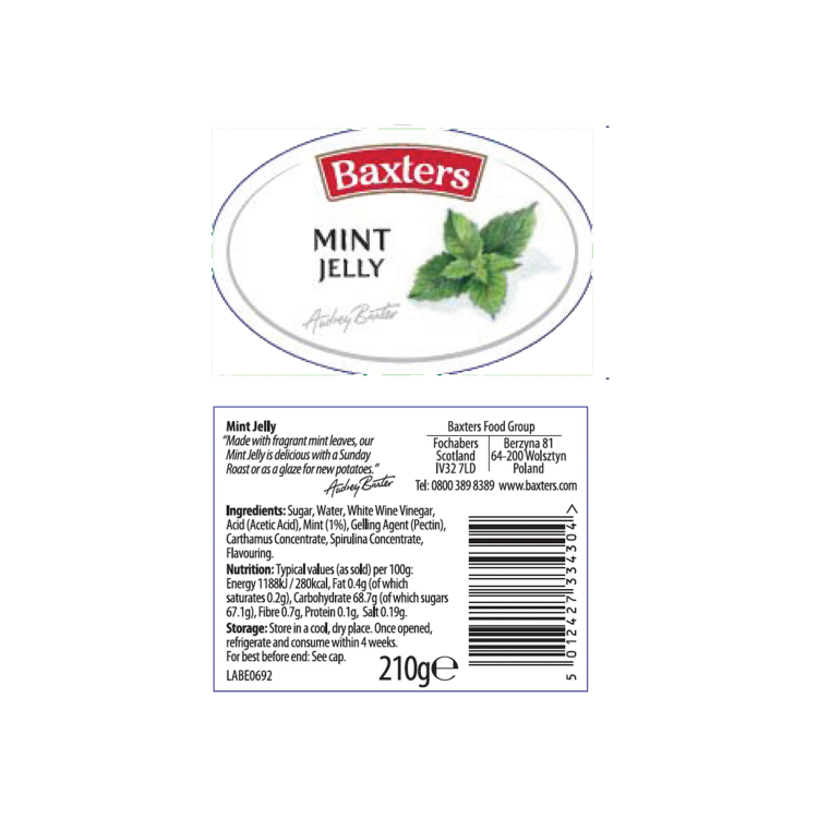| Ingredient Declaration | Sugar,Water, White Wine Vinegar, Acid (acetic acid) Mint, Gelling Agent (Pectin), Carthamus Concentrate, Spirulina Concentrate, Flavouring |