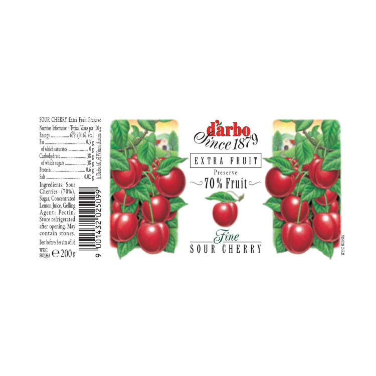 | Ingredient Declaration | Sour cherries 70%sugarconcentrated lemon juicepectin |