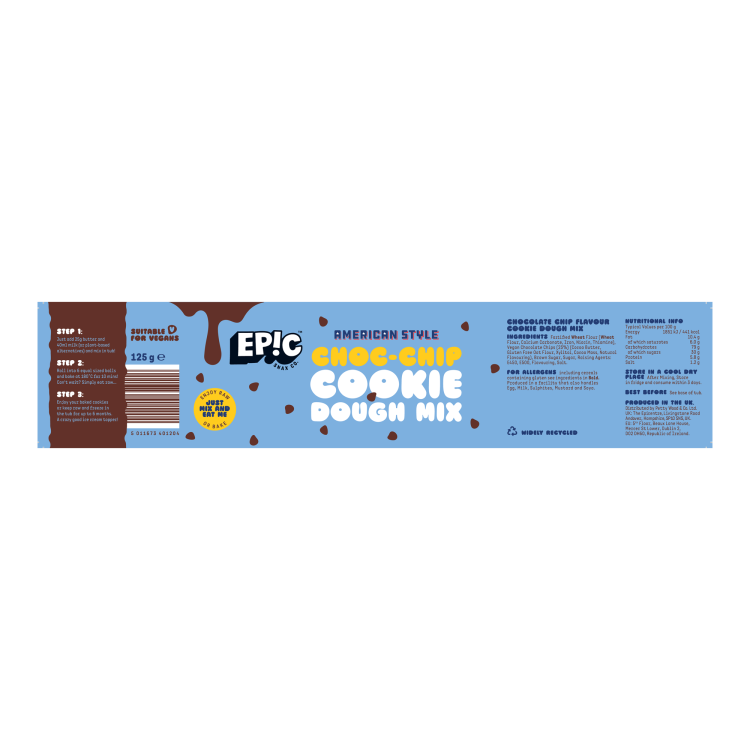 | Ingredient Declaration | Fortified WHEAT flour (Calcium Carbonate, Iron, Niacin, Thiamin), Vegan Chocolate Chips (23%) (Cocoa Butter, Gluten Free Oat Flour, Xylitol, Cocoa Mass, Natural Flavouring), Brown Sugar, Sugar, Raising Agents: E450, E500, Flavouring, Salt. |