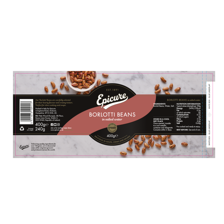 | Ingredient Declaration | Ingredients: Borlotti beans (60%), water, salt. |