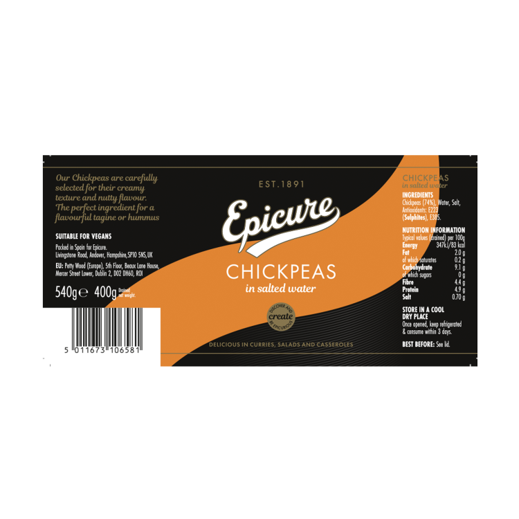 | Ingredient Declaration | chickpeas (74%) , water, salt and antioxidants: sodium metabisulphite (E-223) and sequestrant (E-385) |