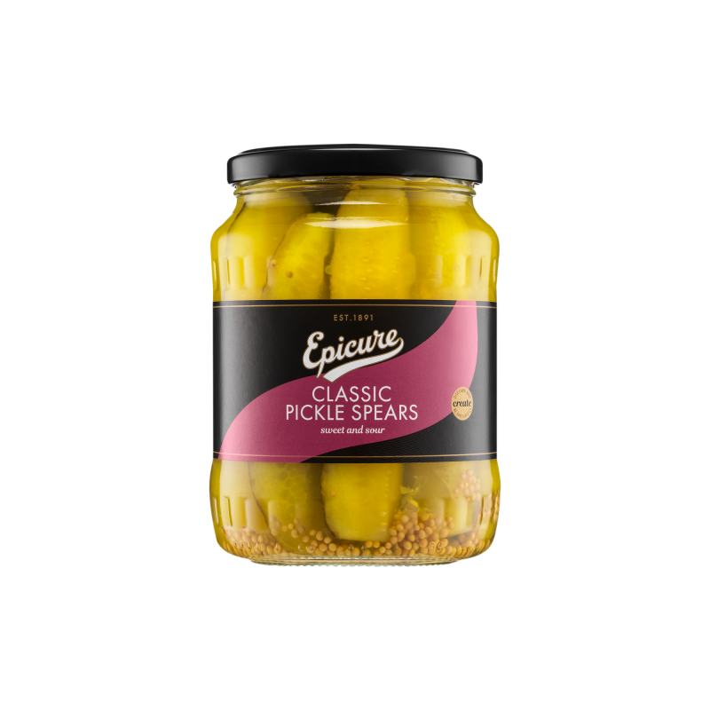 | Ingredient Declaration | Gherkins (55%), water, spirit vinegar, sugar, salt, MUSTARD seeds, flavouring, colour: E101. |