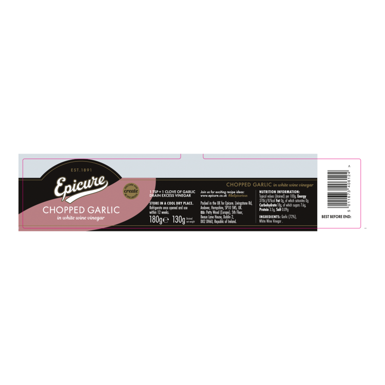| Ingredient Declaration | Dried Garlic (72%)White Wine Vinegar (contains preservative: sulphur dioxide) |
