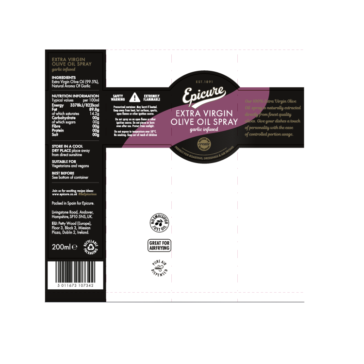 | Ingredient Declaration | 99,5% EXTRA VIRGIN OLIVE OIL / 0,5% NATURAL GARLIC FLAVOUR |