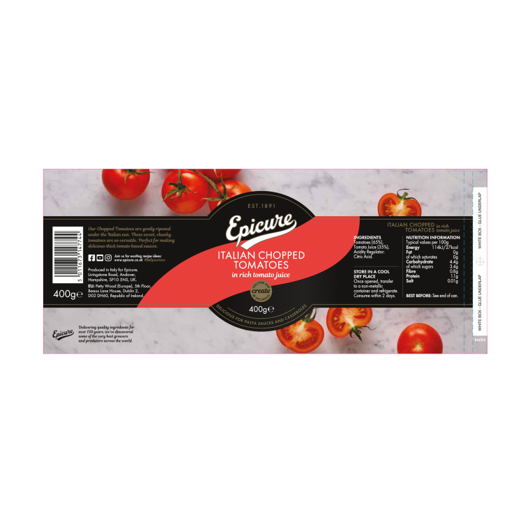 | Ingredient Declaration | Tomatoes (65%), Tomato Juice (35%), Acidity regulator: Citric acid |
