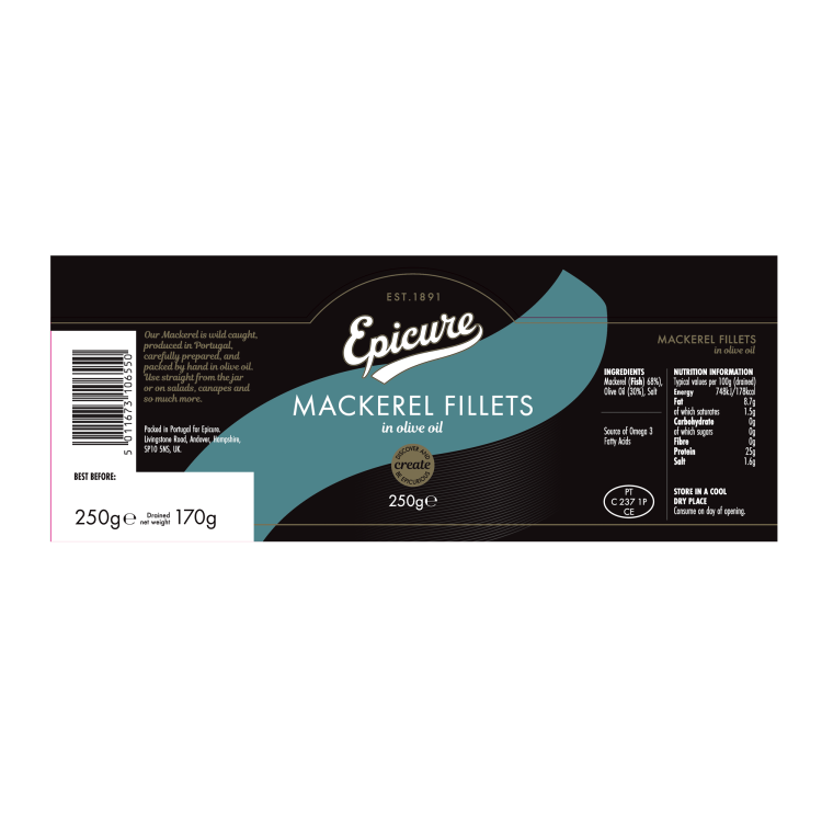 | Ingredient Declaration | MACKERELS (68%), Olive Oil (30%), Salt |