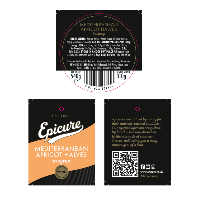 | Ingredient Declaration | Apricots Halves 58,00%, Water 25.04%, Sugar 11,96% , Glucose-fructose syrup 4.80%, Antioxidant :Ascorbic acid 0,20% |