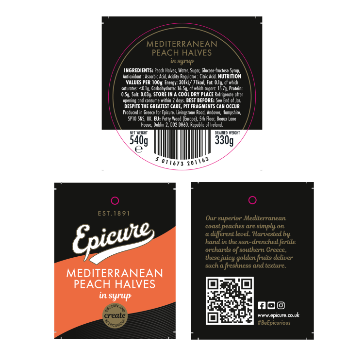 | Ingredient Declaration | peach halves 61,1%, water 23,9%, sugar 10,9%, glucose-fructose syrup 3,8%, Antioxidant : ascorbic acid 0,2%, Acidity Regulator : citric acid 0,1% |