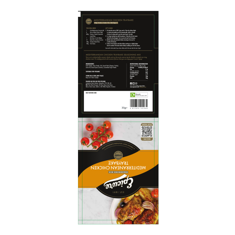 Garlic Powder, Onion Powder, Salt, Herbs (Oregano, Parsley), Lemon Oil, Spices (Turmeric), Caramelised Sugar Powder |