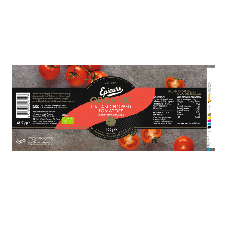 | Ingredient Declaration | Organic chopped peeled tomatoes(60%), Organic tomato juice( 39,9%), acidity regulator: Citric acid |