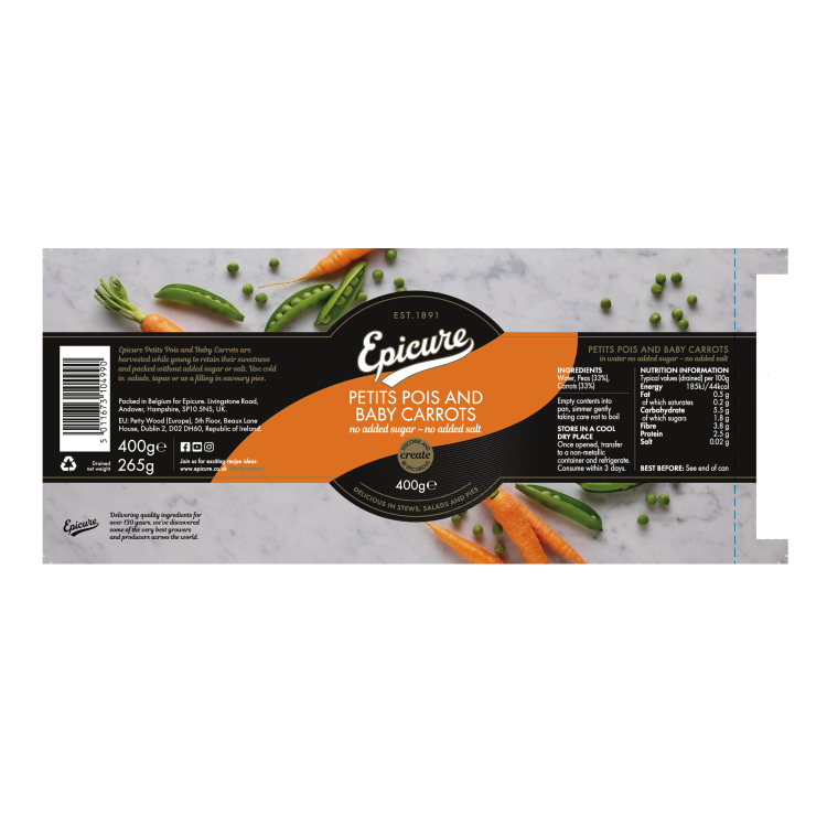 | Ingredient Declaration | Water: 34,46%Peas: 32,77%Carrots: 32,77% |