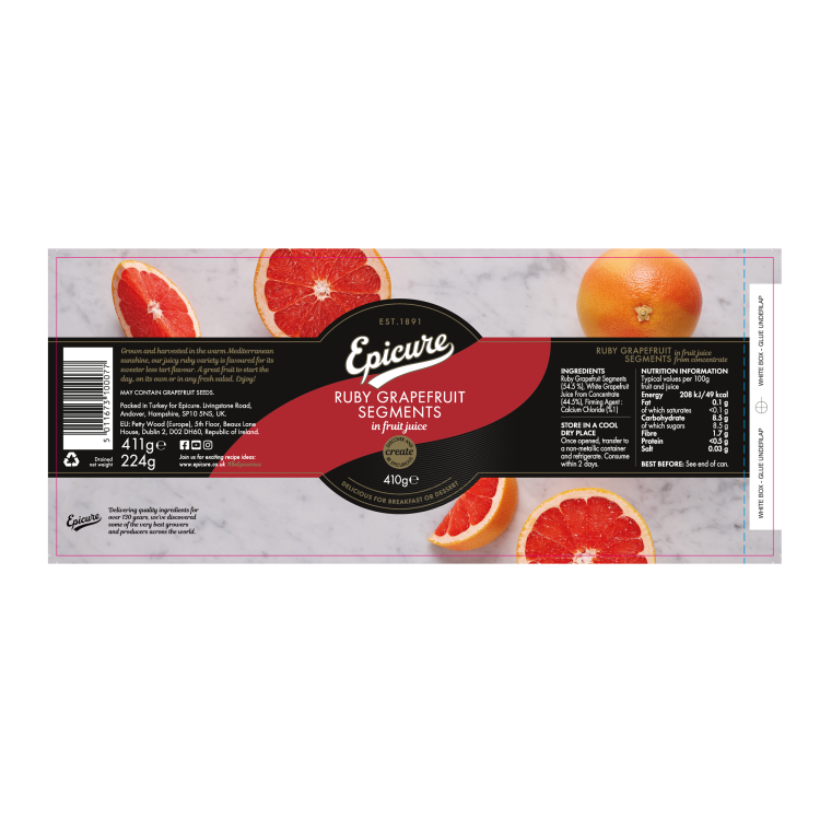 | Ingredient Declaration | Ruby Grapefruit Segments(%54,5), White Grapefruit Juice from Concentrate(%44,5), Firming Agent: Calcium Chloride |