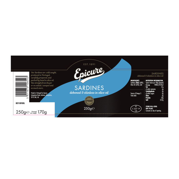 | Ingredient Declaration | SARDINES(68%), Olive Oil (31,8%), Salt |