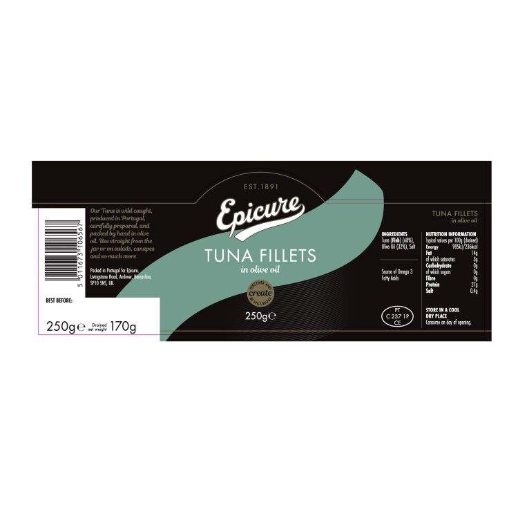 | Ingredient Declaration | TUNA FISH (68%), Olive oil (31,6%), Salt |