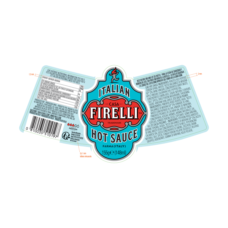 | Ingredient Declaration | Roasted red peppers, water, Aceto balsamico di Modena IGP 12%,apple vinegar, calabrian hot peppers, concentrated lemon juice, sugar, natural flavourings, salt, spices, dried porcini mushrooms, xanthan gum, garlic. |