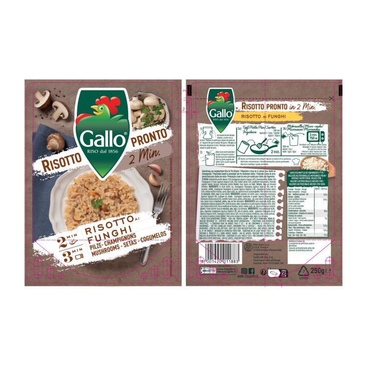 | Ingredient Declaration | Parboiled rice 44.8%, water, champignon mushrooms (Agaricus bisporus) 10%, sunflower oil, CREAM, champignon mushrooms powder (Agaricus bisporus) 0.6%, pinaroli mushrooms (Suillus luteus) 0.6%, modified cassava starch, parsley, grilled onion, salt, yeast extract (contains GLUTEN) |