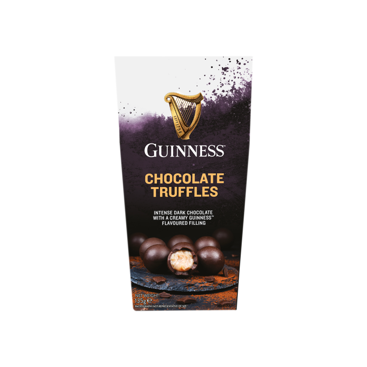 | Ingredient Declaration | INGREDIENTS: Sugar, Cocoa Mass, Vegetable Oils (Palm, Rapeseed, Sunflower), Cocoa Butter,Glucose Syrup, Water, Dried Whole MILK, Dried Skimmed MILK, Flavourings, Dextrose,GUINNESS? Beer (1%) (contains BARLEY and GLUTEN), Humectant (Sorbitol Syrup), NeutralSpirit, Emulsifier (SOYA Lecithin), Preservative (Sorbic Acid), BARLEY Malt Extract. DarkChocolate contains Cocoa Solids 52% minimum. |