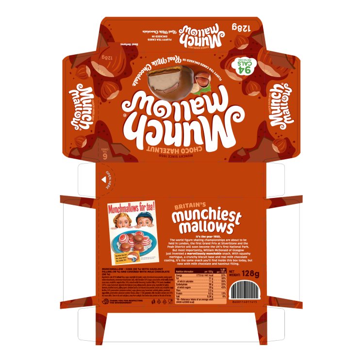 Ingredients: cake 30 % (WHEAT flour, sugar, vegetable fat (palm), water, fat reduced cocoa powder, raising agent: sodium-bicarbonate, ammonium-bicarbonate; salt), milk chocolate 30 % (sugar, cocoa butter, whole MILK powder, cocoa mass, emulsifier: SOYA lecithin, E476; natural vanilla flavouring), hazelnut filling 19 % (water, HAZELNUT (20 % ), sugar, humectant: glycerol; dried glucose syrup, WHEY powder, glucose syrup, vegetable fat (palm), dextrose, modified starch, gelling agent: amidated pectin, fat reduced cocoa powder, tartaric acid, emulsifier: SOYA lecithin, E476; preservative: potassium sorbate), sugar, glucose syrup, humectant: sorbitol; gelatin, powdered EGG-WHITE, preservative: potassium sorbate; flavour, colour: E 150d; PEANUTS. |