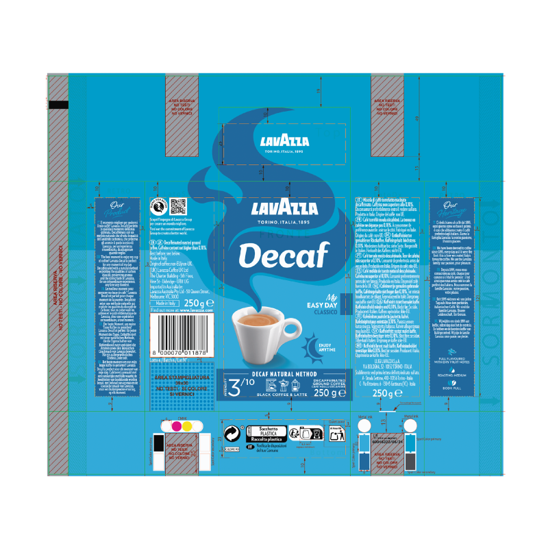 | An aromatic, well-balanced 100% Arabica blend from Central America. Experience a full-bodied, unforgettable flavour. This blend is ideal if you want to avoid caffeine without giving up the luxury of authentic Italian coffee. |