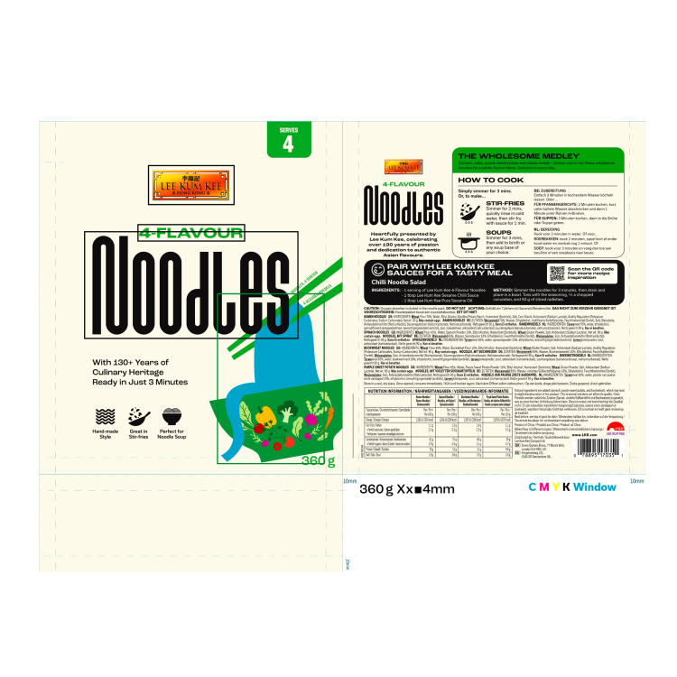 Ramen Noodles: WHEAT Flour 70%, Water, Ethyl Alcohol, Modified Potato Starch, Humectant (Sorbitols), Salt, Corn Starch, Antioxidant (Sodium Lactate), Acidity Regulators (Potassium Carbonates, Sodium Carbonates).Spinach Noodles: WHEAT Flour 65%, Water, Spinach Powder 10%, Ethyl Alcohol, Humectant (Sorbitols), WHEAT Gluten Powder, Salt, Antioxidant (Sodium Lactate).Buckwheat Noodles: WHEAT Flour 65%, Water, Buckwheat Flour 10%, Ethyl Alcohol, Humectant (Sorbitols), WHEAT Gluten Powder, Salt, Antioxidant (Sodium Lactate), Acidity Regulators (Potassium Carbonates, Sodium Carbonates).Purple Sweet Potato Noodles: WHEAT Flour 65%, Water, Purple Sweet Potato Powder 10%, Ethyl Alcohol, Humectant (Sorbitols), WHEAT Gluten Powder, Salt, Antioxidant (Sodium Lactate).May contain eggs. |