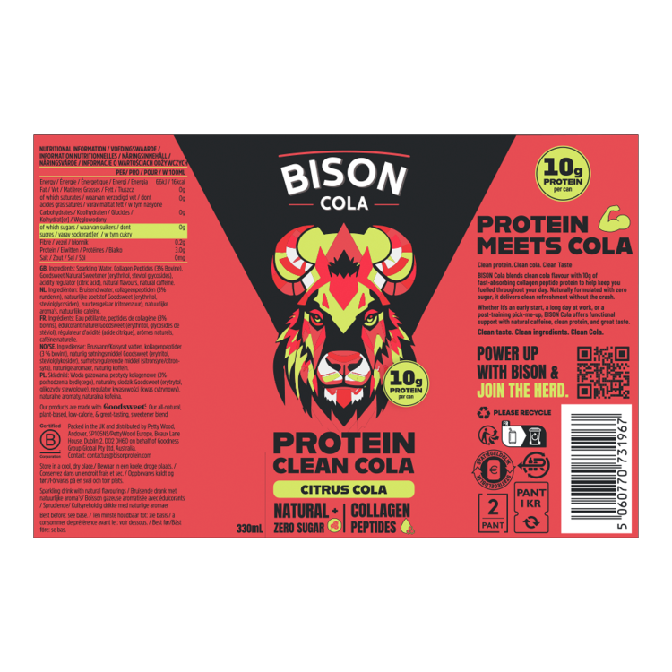 BISON PROTEIN LIME COLA 12X330ML CAN