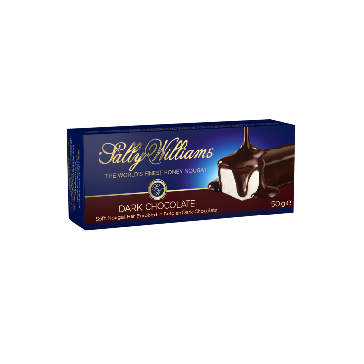 | Ingredient Declaration | Ingredients: Nougat (78%): (Glucose Syrup (Corn Derived), Sugar, EGG White, Honey (6%), Wafer paper (Potato Starch and Vegetable Oil (Olive Fruit)), Flavouring, Corn Starch], Dark Chocolate (22%): )Cocoa Mass, Sugar, Cocoa Butter, Emulsifier (SOY Lecithin)]. Chocolate contains cocoa solids 50% minimum. |