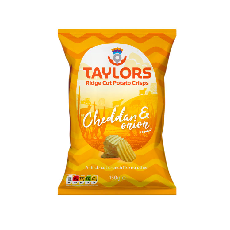 | Ingredient Declaration | Potatoes, High Oleic Sunflower Oil, Cheddar & Onion Flavour Seasoning (Whey Powder (MILK), Onion Powder, Sea Salt, Cheese Powder (MILK), Yeast Powder, Sugar, Yeast Extract Powder, Salt, Natural Flavouring, Parsley, Colour: Paprika Extract, Acid: Citric Acid). |