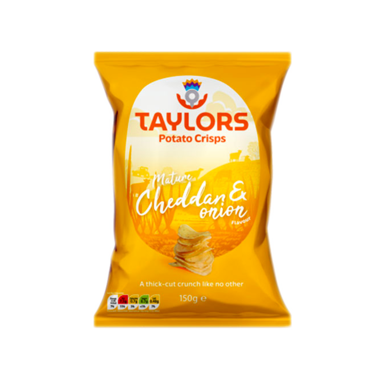 | Ingredient Declaration | Potatoes, High Oleic Sunflower Oil, Mature Cheddar & Onion Flavour Seasoning (Whey Powder (Milk), Onion Powder, Sea Salt, Mature Cheddar Cheese Powder (Milk), Yeast Powder, Sugar, Yeast Extract Powder, Salt, Natural Flavouring, Parsley, Colour: Paprika Extract, Acid: Citric Acid). |
