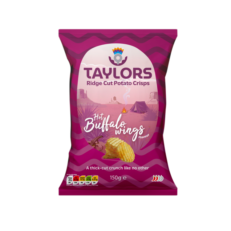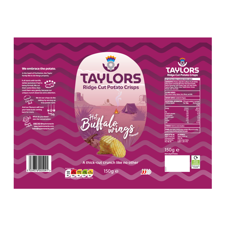 | Ingredient Declaration | Potatoes, High Oleic Sunflower Oil, Hot Buffalo Wings Seasoning (Rice Flour, Yeast Extract Powder, Natural Flavouring, Onion Powder, Sugar, Salt, Garlic Powder, Cayenne Pepper, Paprika, Colour: Paprika Extract, Tomato Powder, Acid: Citric Acid). |