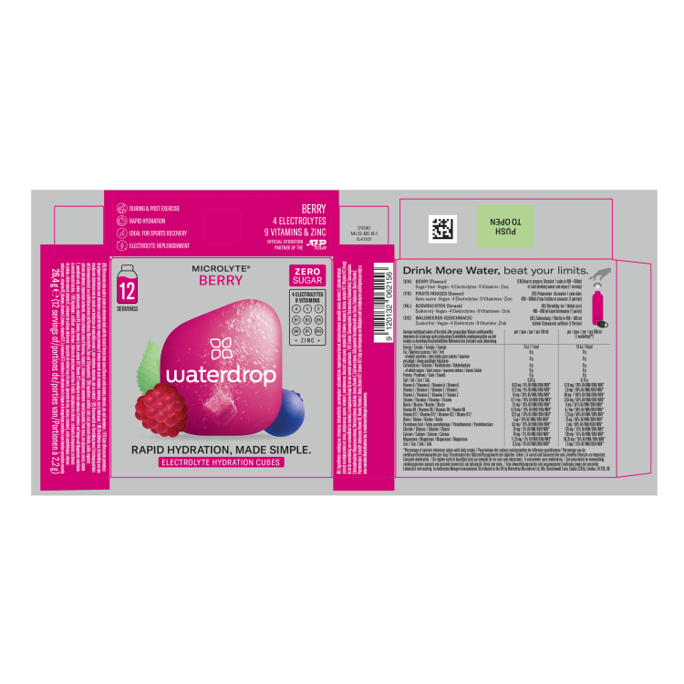 | Ingredient Declaration | Ingredients: acidifier: citric acid; potassium chloride, acidity regulator: calcium phosphates; magnesium carbonate, sodium carbonate, natural flavouring, vitamin C, calcium carbonate, sweetener steviol glycosides from stevia, zinc gluconate, niacin, vitamin E, pantothenic acid, colour: anthocyanins; vitamin B6, thiamin, vitamin A, biotin, vitamin B12 |