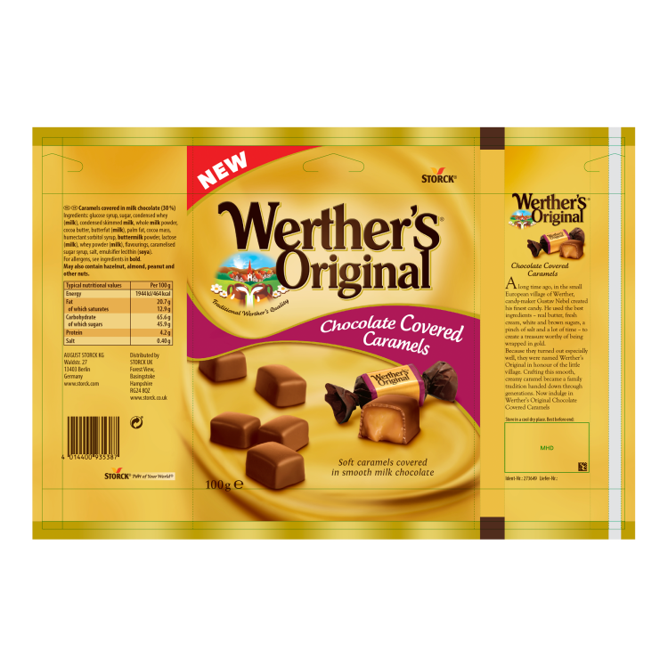 | Ingredient Declaration | Glucose syrup, sugar, condensed whey (MILK), condensed skimmed MILK , whole MILK powder, cocoa butter, butterfat (MILK), palm fat, cocoa mass, humectant sorbitol syrup, BUTTERMILK powder, lactose (MILK), whey powder (MILK), flavourings, caramelised sugar syrup, salt, emulsifier lecithin (SOYA). |