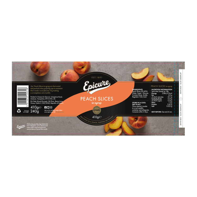 | Ingredient Declaration | Peach (58.5%), Water (31.6%), Sugar (9.5%), Acidity Regulator:Citric Acid(0.1%) |
