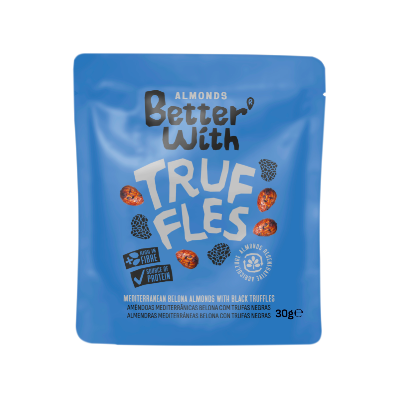Ingredient Declaration | Almonds (93%), truffle powder (dry summer truffle seasoning, buckwheat flour, maltodextrin, flavouring) (3,5%), brown sugar (2,55%), salt (0,85%) and chickpea flour (0,1%) |