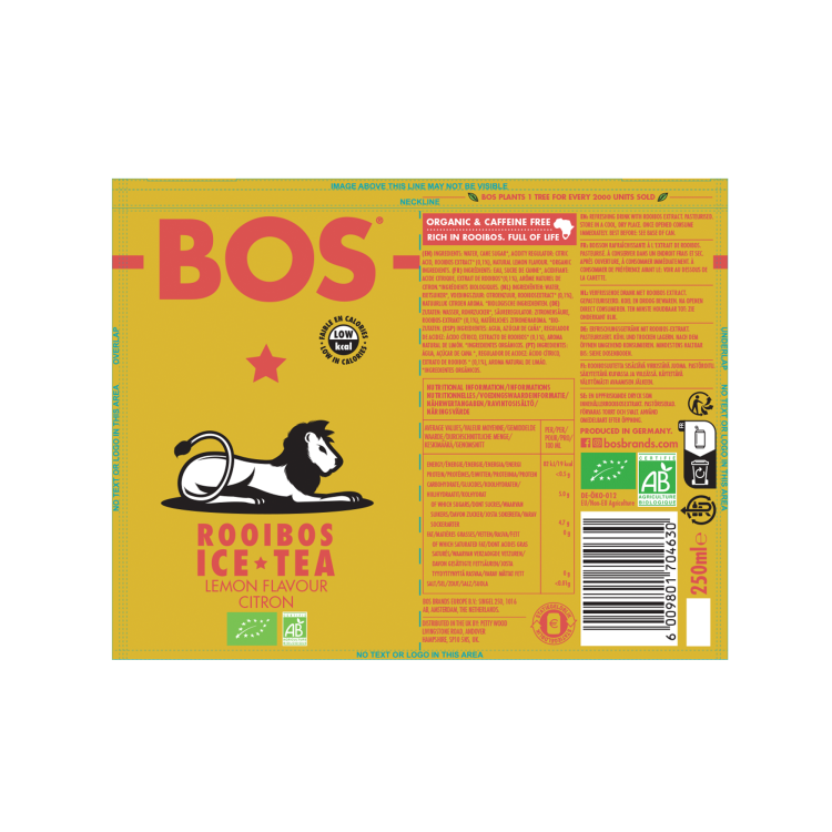 | Ingredient Declaration | Water, cane sugar*, acidity regulator: citric acid, rooibos extract* (0.1%), natural lemon flavouring. *Organic ingredients. |